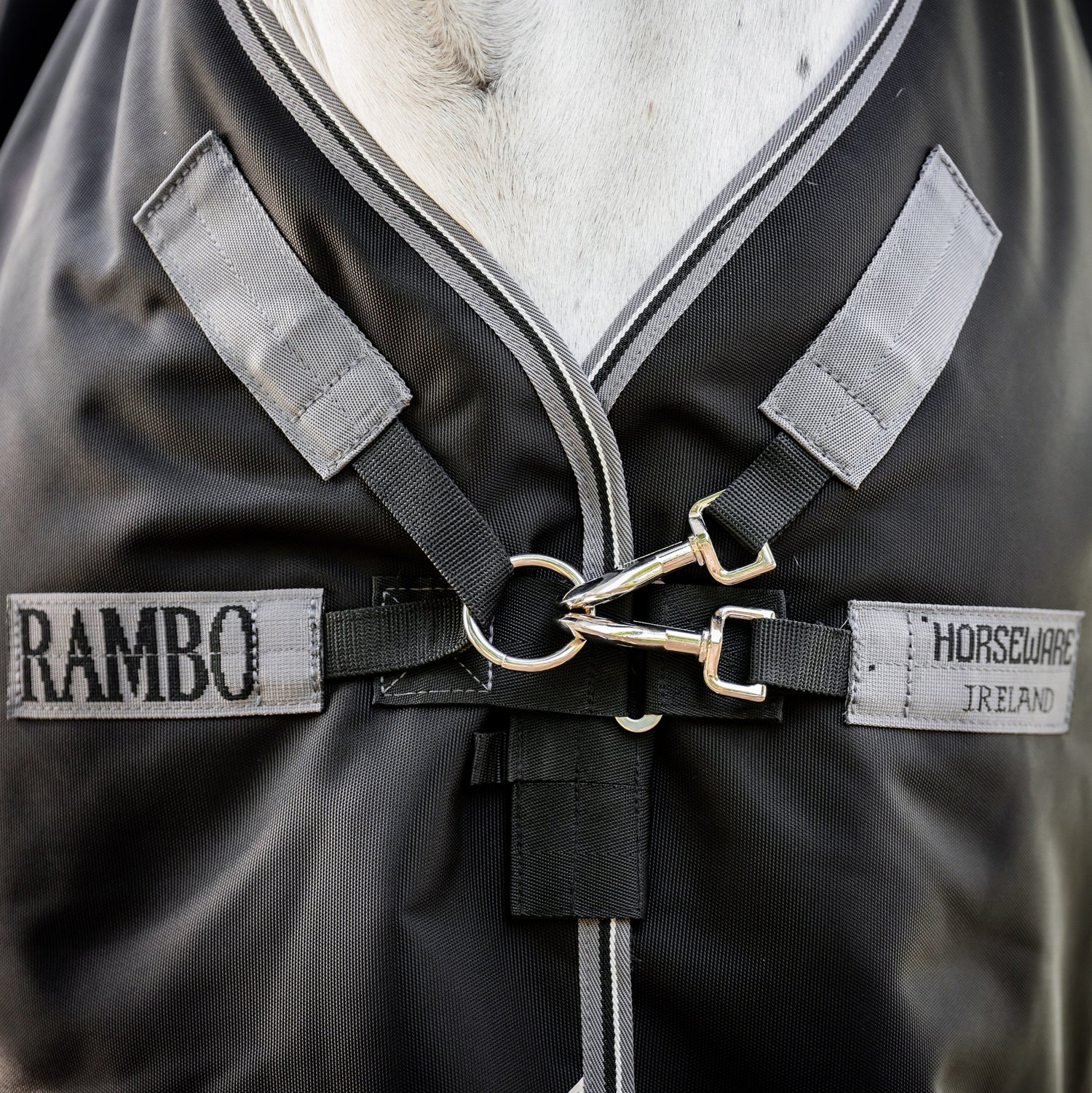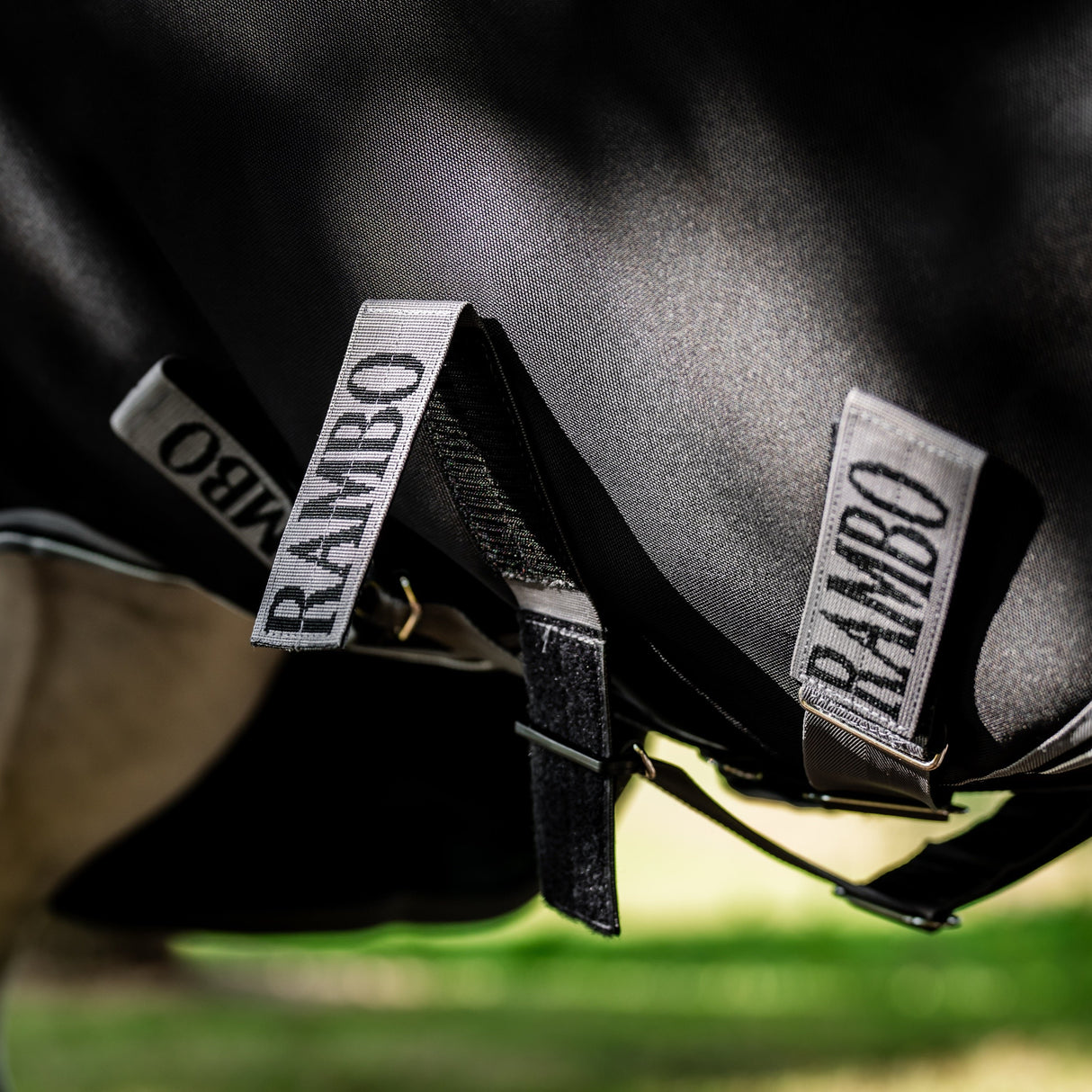 Other features include a contoured detachable hood for greater rugging choice, integrated liner loops for full compatibility with the extensive liner collection, reflective strips, wipe clean tail cord, and three crossed removable surcingle straps integrating the Rambo® Safety Surcingle System.