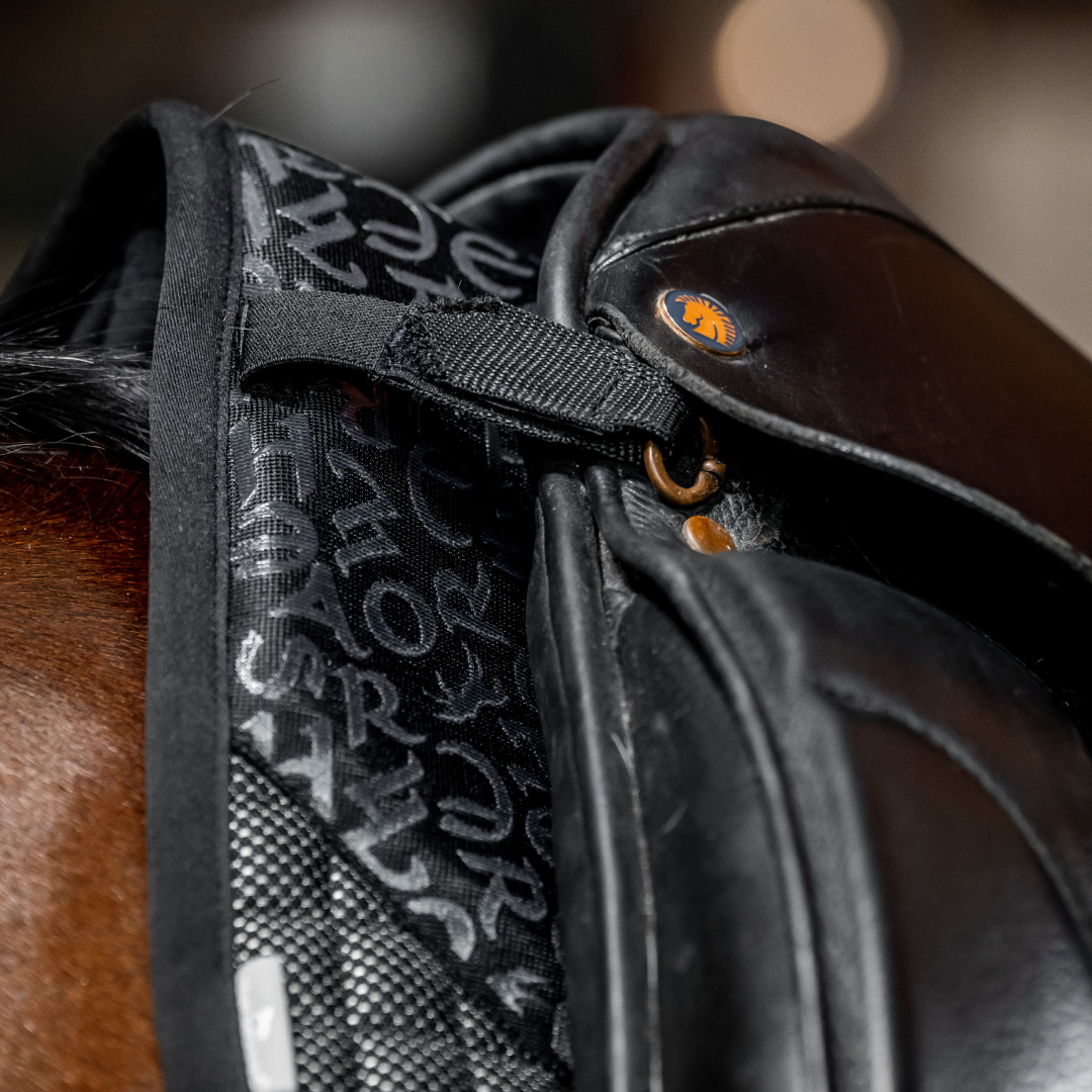 Le tapis de dressage Horseware Tech Comfort est un excellent ajout à la garde-robe de votre cheval. Doté d' une zone arrière en mousse à couche double pour offrir un maximum de confort lors de la conduite.