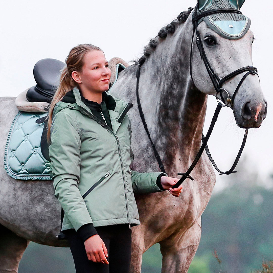 Magnifiquement taillée pour vous garder belle toute l'année, la veste Lucky a été soigneusement conçue avec une couche extérieure imperméable et coupe-vent, ainsi que des coutures effilées pour vous protéger des éléments pendant que vous passez du temps avec votre cheval !