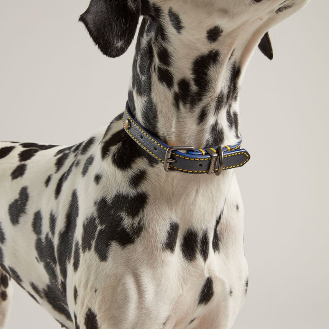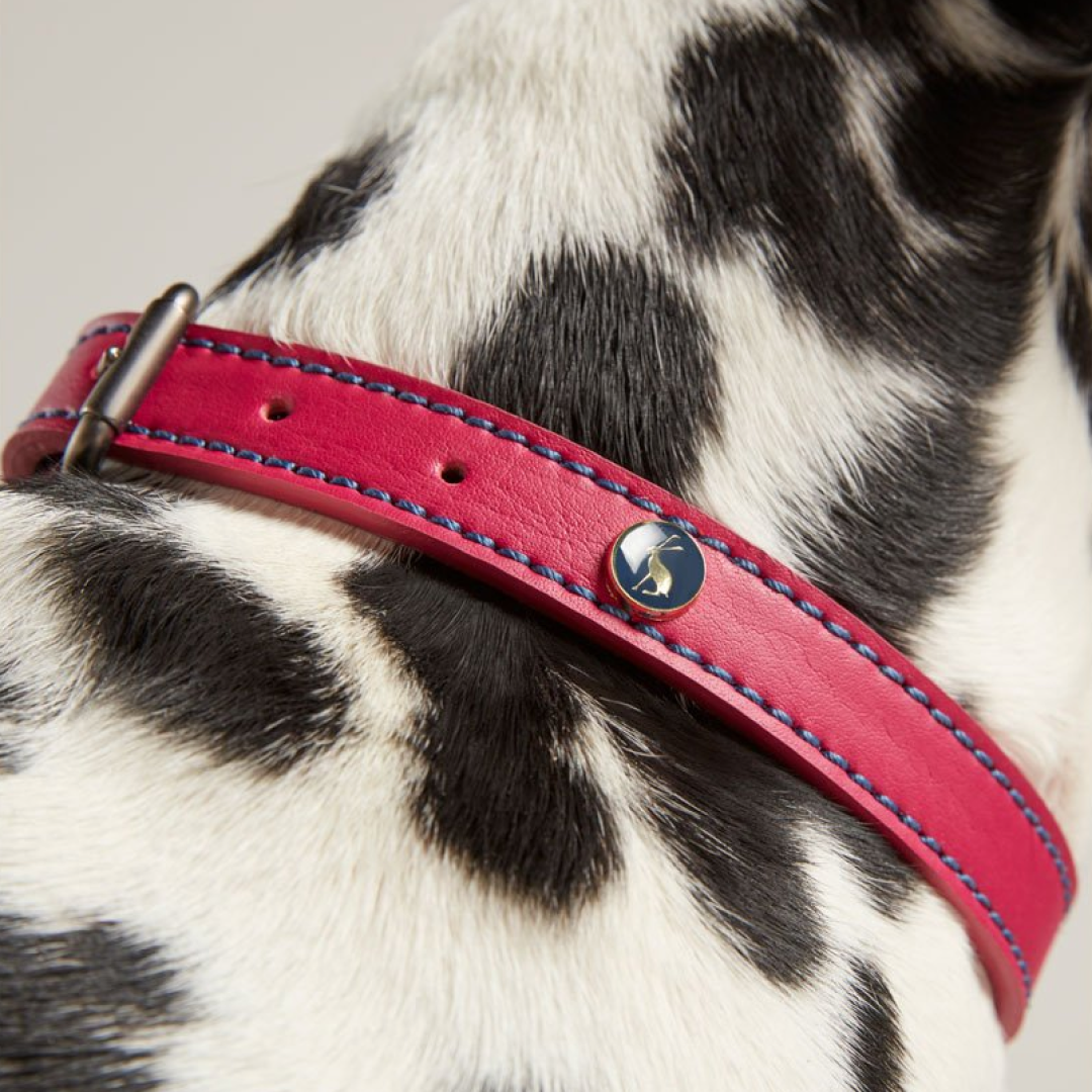 Fabriqué à partir de cuir conçu pour durer, ce collier pour chien confortable et durable est disponible en quatre tailles avec une laisse assortie et fini avec des embellissements décoratifs Joules.
