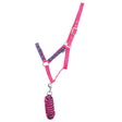 Ce licol rose amusant est le complément parfait à la garde-robe de vos chevaux. Orné de motifs de couronne et d'étoiles sur le nez et les joues pour correspondre à la gamme Little Rider. Complet avec une pièce de tête à boucle réglable et une corde de plomb bicolore.