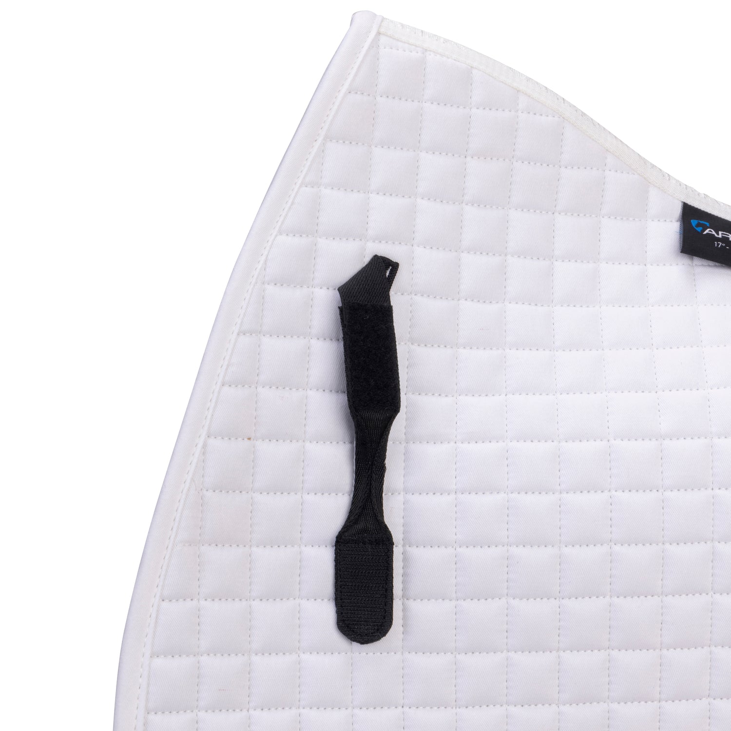 Formellement la gamme performance, le tapis de selle numéroté Shires ARMA est un excellent ajout à votre tenue de compétition. Avec des poches transparentes intégrées des deux côtés, vous offrez un moyen facile d'afficher vos numéros sans craindre qu'ils n'interfèrent avec votre punaise.