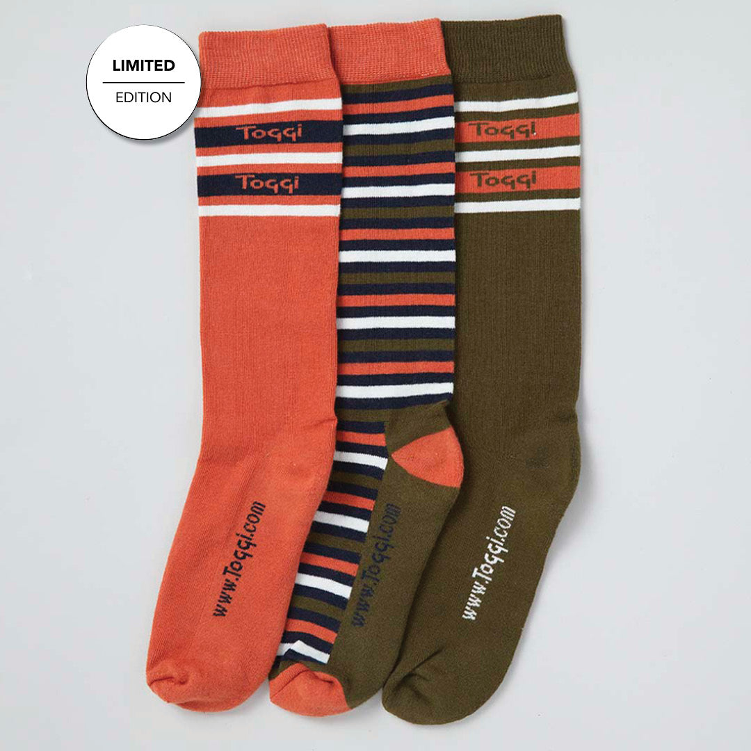 Chaussettes en bambou à rayures rétro Toggi - Terre cuite/marine/sauge / Taille unique est en rupture de stock et sera expédié dès qu’il sera de retour en stock.