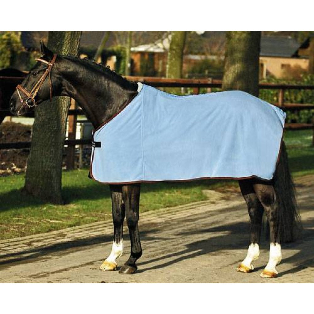 The HKM Cooler is the perfect choice for keeping your horse comfortable and dry after a workout or during transport. Made from 100% polyester, this cooler is highly insulated and breathable, ensuring optimal sweat absorption. The double-sided, extra-soft polar fleece provides extra comfort for your horse, while the tail strap and protective padded withers ensure a secure fit. The extra long sides and high cut provide additional coverage, making this cooler suitable for horses of all sizes. Machine washable at 30 degrees and suitable for dryer, this cooler is also durable and hard wearing, making it a great investment for any horse owner.