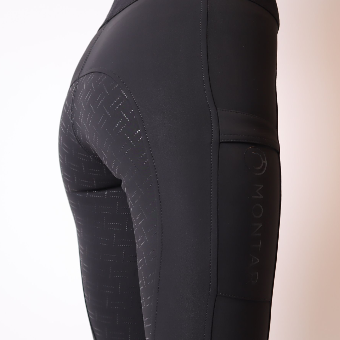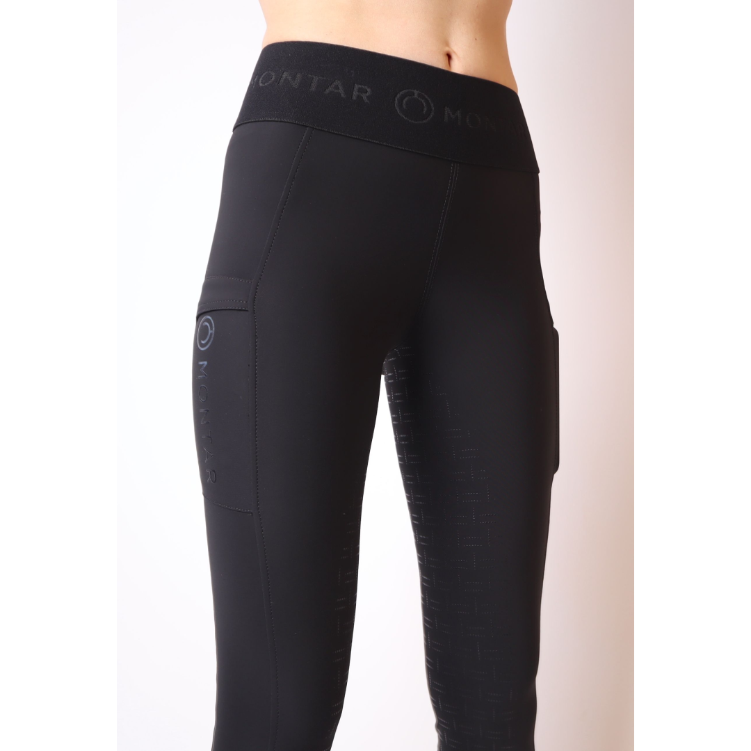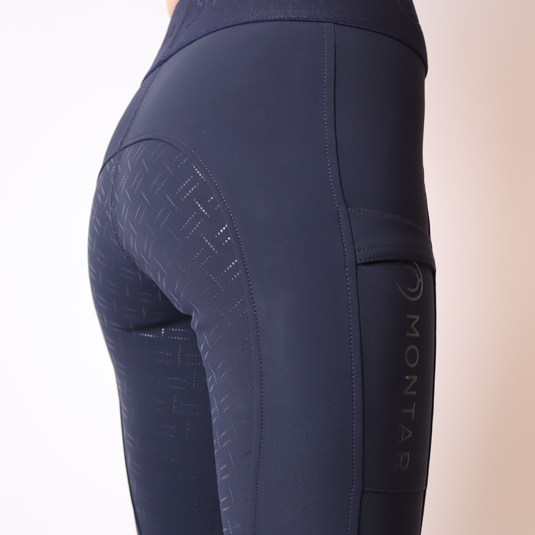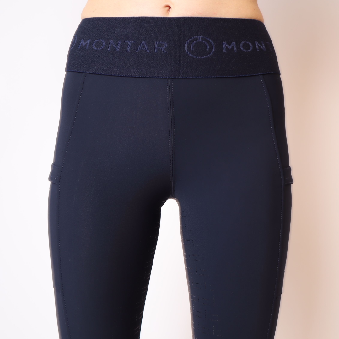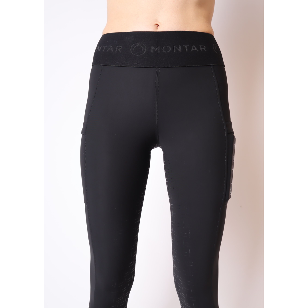 The breeches have two thigh pockets for your phone and feature a sporty look with a tone in tone Montar logo tape waistband.
