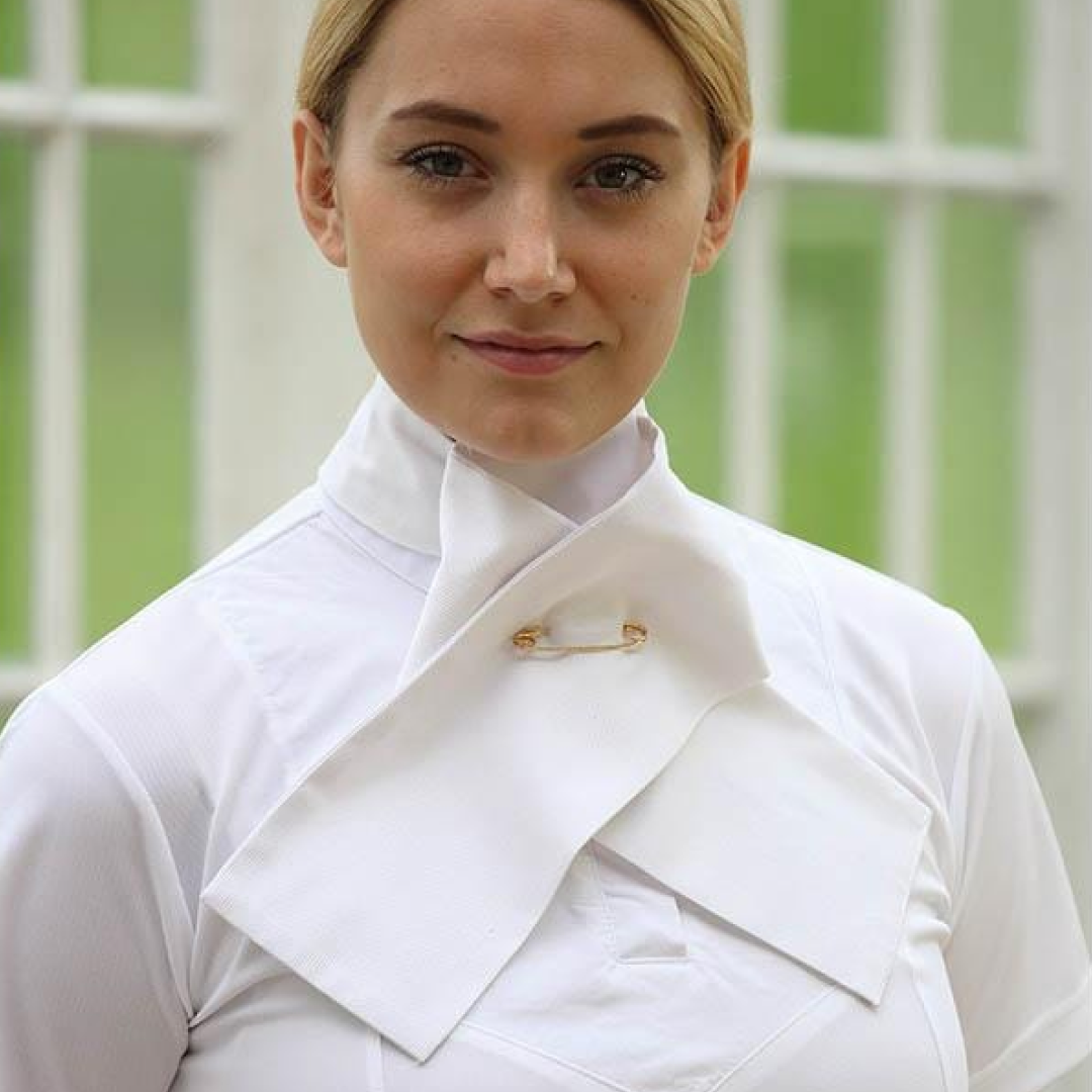 Forget fiddly knots, simply fasten the touch close neck strap and add a stock pin!