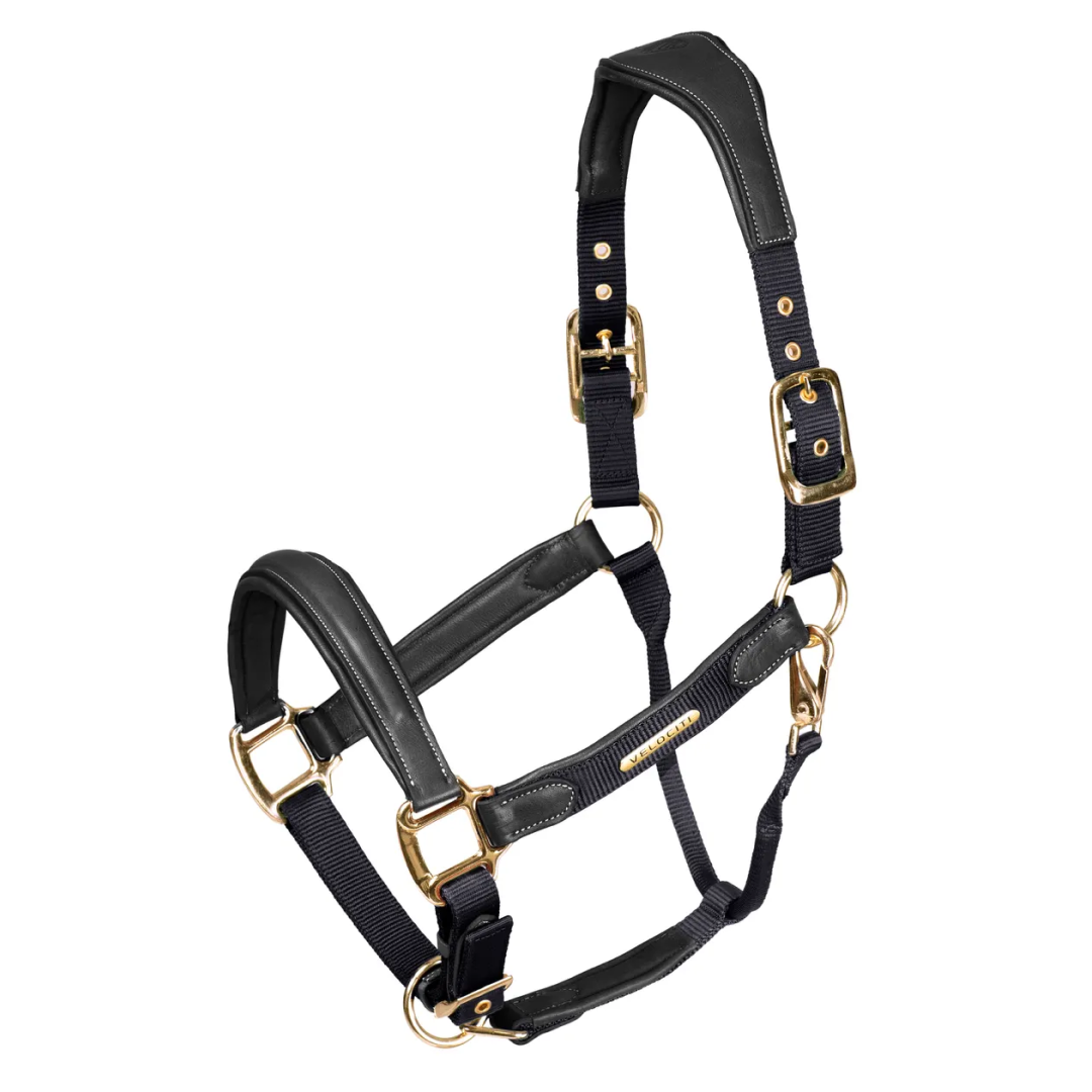 Classic with a contemporary twist, the Pro Series Luxe Velociti LUSSO padded leather headcollar features European leather and durable polypropylene webbing for an individual look in ergonomic form. High quality aniline dyed leather is waxed for a soft sheen finish, feature stitching on all leather parts adds definition.